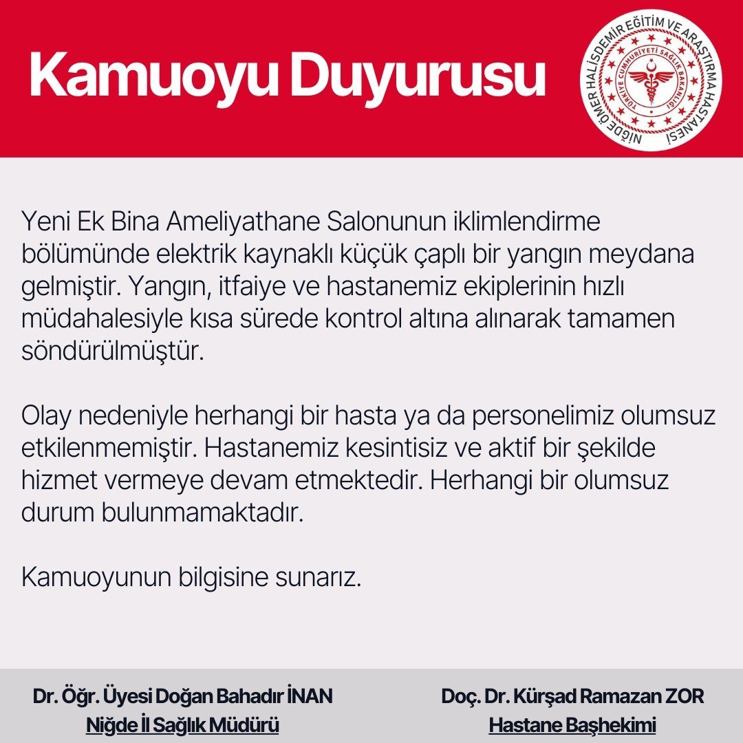 Niğde Ömer Halisdemir Eğitim ve Araştırma Hastanesi’nde yaşanan yangın olayının ardından, hastane açılmadan önce dile getirilen uyarıların dikkate alınmadığı öğrenildi.