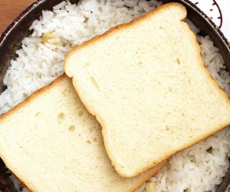 Ocakta unutulmuş pilavın üzerine bir dilim beyaz ekmek koyun ve tencerenin kapağını kapatın.