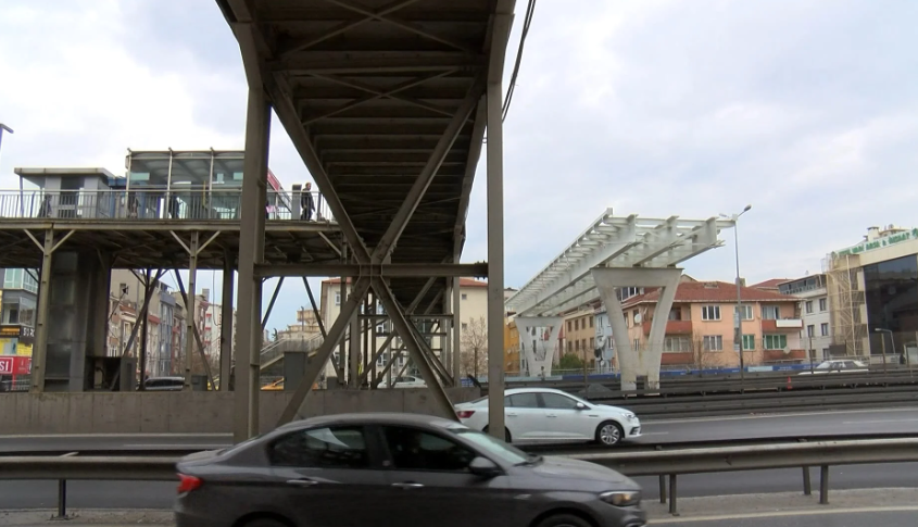 İstanbul Büyükşehir Belediyesi'nin (İBB) Küçükçekmece Beşyol Metrobüs Durağı'nın bulunduğu noktada başlattığı üst geçit yenileme çalışmaları kapsamında eski merdiven ve engelli rampası yerinden söküldü. 'Engelli kullanımına uygun yeni üst geçitler yapıyoruz' tabelalarıyla çevrilen alanda, çalışmaların yaklaşık 2 ay önce başladığı öğrenildi.