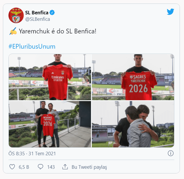 2026 yılına kadar sürecek sözleşme imzalanan Yaremchuk'un serbest kalma bedeli ise 100 milyon avro olarak belirlendi.