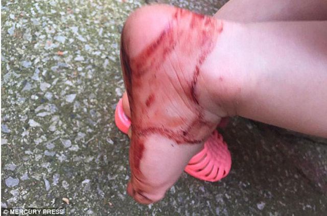 Daily Mail'in haberine göre; Sandaletleri giydikten yarım saat sonra ayağı kanlar içinde kalan Esmé'nin annesi Lisa Conner, ebeveynleri sosyal medyadan bu tip ayakkabılara karşı uyardı.