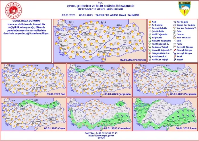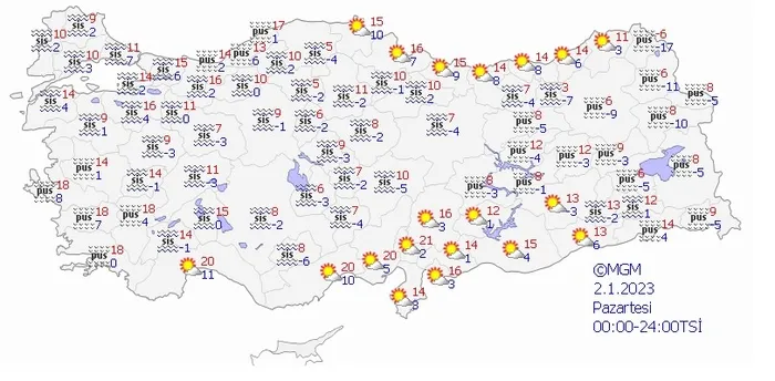 İL İL HAVA SICAKLIKLARI VE HAVA OLAYLARI ( 02 OCAK 2023)