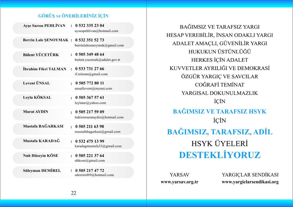 12 Ekim'de yapılacak HSYK seçimlerinde Paralel Yapı ile ittifak kurduğu iddia edilen YARSAV, adaylarının iletişim bilgilerini yayınladı.