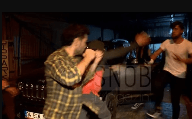 Olaylı gecede, alkollü olduğu görülen Şafak Pekdemir'in arkadaşı, bir muhabire kafa atıp, tekme ile saldırdı.