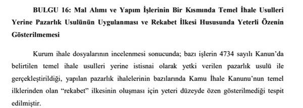 Yerel seçimler öncesinde ve sonrasında sürekli olarak şeffaflık vurgusu yapan ve adil belediyecilik naraları atan CHP’nin Ankara Büyükşehir Belediye Başkanı Mansur Yavaş’ın söylemlerinin tam aksi yönde hareket ettiğini Sayıştay Raporları ispatladı. Raporun 16. Denetim Bulgusunda Yavaş’ın ihalelerde rekabet ortamını kaldırdığı, “Mal alımı ve yapım işlerinin bir kısmında temel ihale usulleri yerine pazarlık usulünün uygulanması ve rekabet ilkesi hususunda yeterli özenin gösterilmemesi... Kurum ihale dosyalarının incelenmesi sonucunda; bazı işlerin 4734 Sayılı Kanun’da belirtilen temel ihale usulleri yerine istisnai olarak yetki verilen pazarlık usulü ile gerçekleştirildiği, yapılan pazarlık ihalelerinin bazılarında Kamu İhale Kanunu’nun temel ilklerinden olan “rekabet” ilkesinin oluşması için yeteri düzeyde özen gösterilmediği tespit edilmiştir” ifadeleriyle kayıt altına alınıyor.