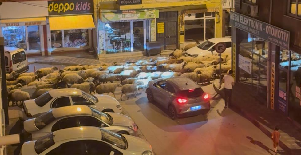 Tokat'ta baharın gelişiyle birlikte şehir merkezinden geçen yüzlerce küçükbaş hayvanın yayla göçü, dron ile havadan görüntülendi.