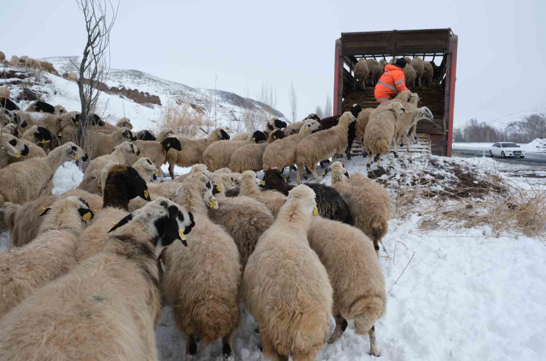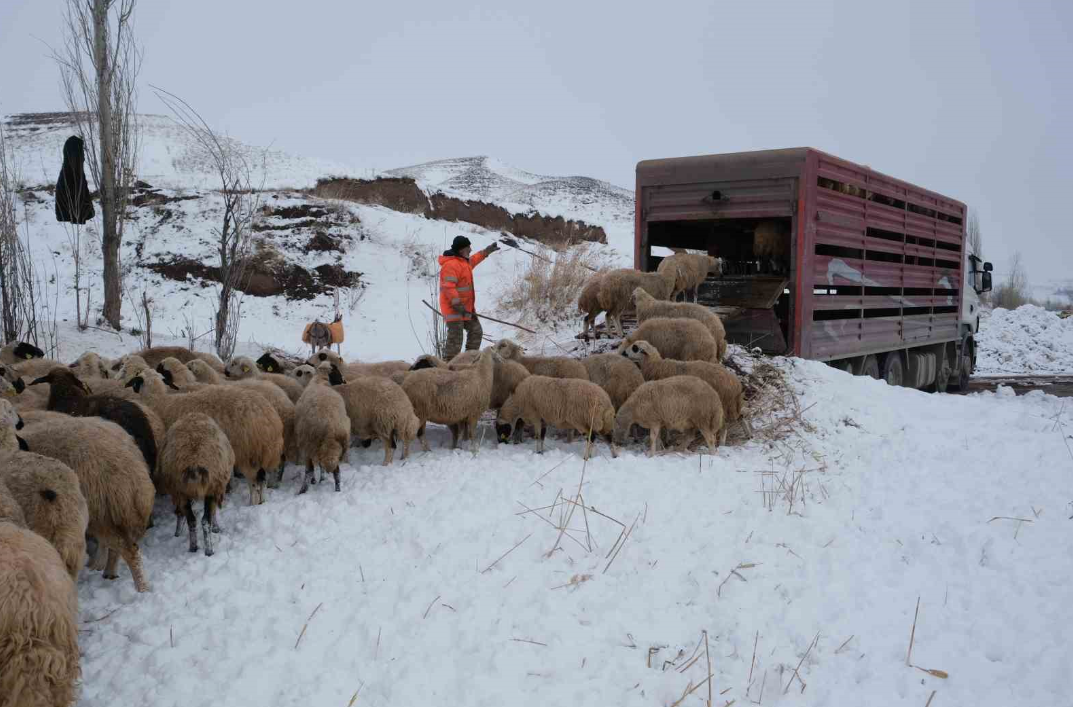 1 metreden fazla yağan kar, otları tamamen kapattı. Koyunlarına yiyecek bulamayan besici, sürülerini Erzincan’daki köyüne geri götürmek zorunda kaldı. Sürü sahiplerinden Hüseyin Küçük, bu yıl karın çok yağması nedeniyle erken yükleme yaptıklarını belirterek, “Koyun taşıma yapıyoruz.