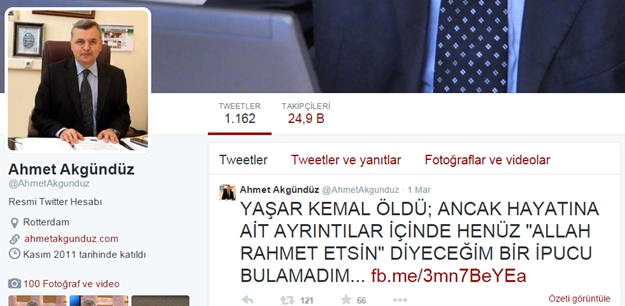 Yazar Ahmet Akgündüz, cumartesi hayatını kaybeden ve bugün toprağa verilen edebiyatçı Yaşar Kemal hakkında çok tartışılacak bir yorumda bulundu.