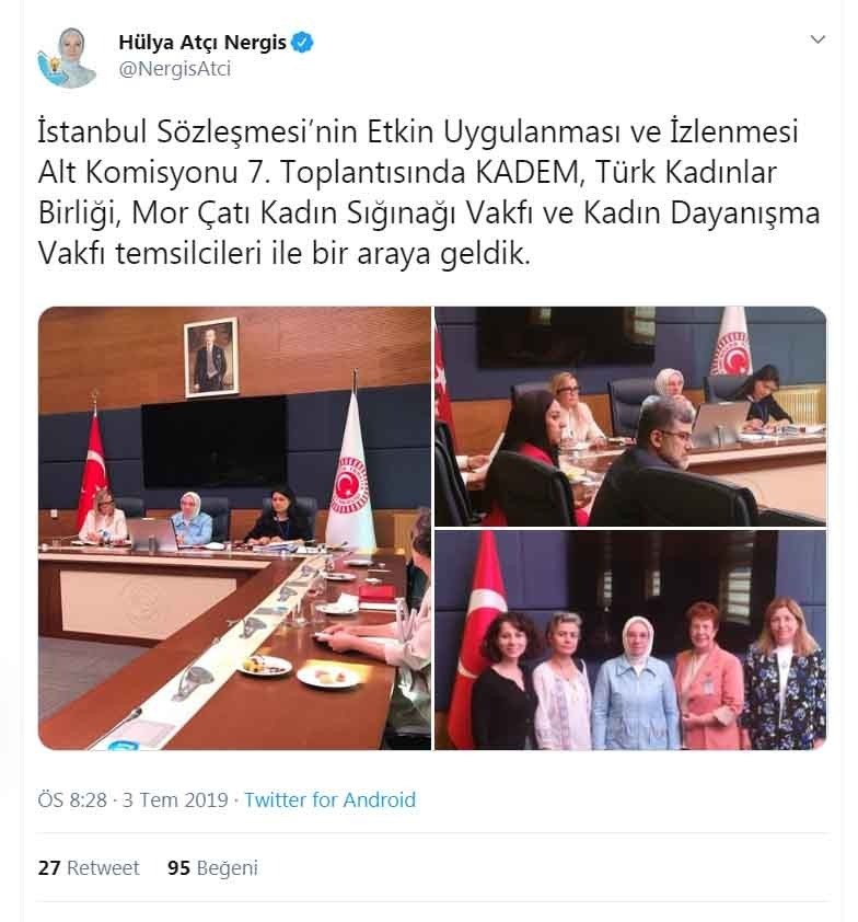 “KADEM gibi hükümet yanlısı bir dernekle, Mor Çatı gibi hükümet karşıtı, din düşmanı, LGBT destekçisi kadın dernekleri bir araya gelip aynı konuda uzlaşıyorlar. Hak ve batıl bir konuda uzlaşmışsa büyük ihtimal hakikatten vazgeçilmiştir. Tabii burada bu kadın dernekleri bu sözleşmenin sadece savunucularıdır. Sözleşmeyi imzalayan ve ısrarla daha etkin uygulanmasını isteyen AK Parti'dir. Burada AK Parti'yi görmezden gelip vebali sadece bu kadın derneklerine yüklemek de haksızlık olur.”