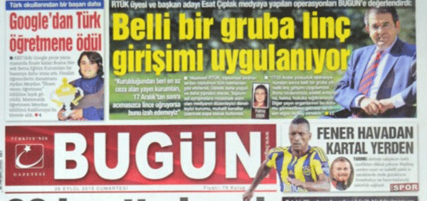 İşte Esat Çıplak’ın, FETÖ – CIA ortaklığıyla yönetilen gazeteci Bugün’e sürmanşet olmuştu: