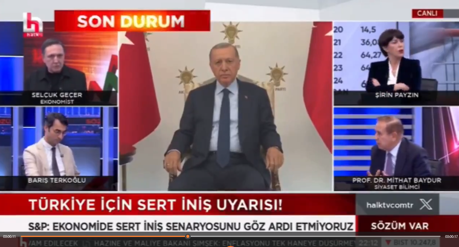 Halk TV her gün yeni bir skandala imza atılıyor. Şirin Payzın’ın sunduğu programda sözde Ekonomist Selçuk Geçer, Barış Terkoğlu ve Siyaset Bilimci Prof. Mithat Baydur Cumhurbaşkanımız Erdoğan’a yönelik küstahça lakap takmaya başladılar. Selçuk Geçer Erdoğan için, “Yaptığı şeyleri biliyoruz. Aleyhine olan şeyleri nasıl lehine çevirdiğini görüyoruz” derken Prof. Mithat Baydur, “Siyaseten Kurnaz desek ona” diyerek ekleme yaptı. İşte o sırada sunucu Nevşin Mengü devreye girerek “Amerikalıların dediği gibi ‘Politik Animal’ yani ‘Politik Hayvan’ dedi. Selçuk Gezer de onu tasdikledi.