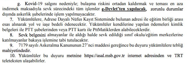 Yedek subay/astsubay adayları ile erbaş/erlerin sevk tarihleri aşağıdaki tablodadır