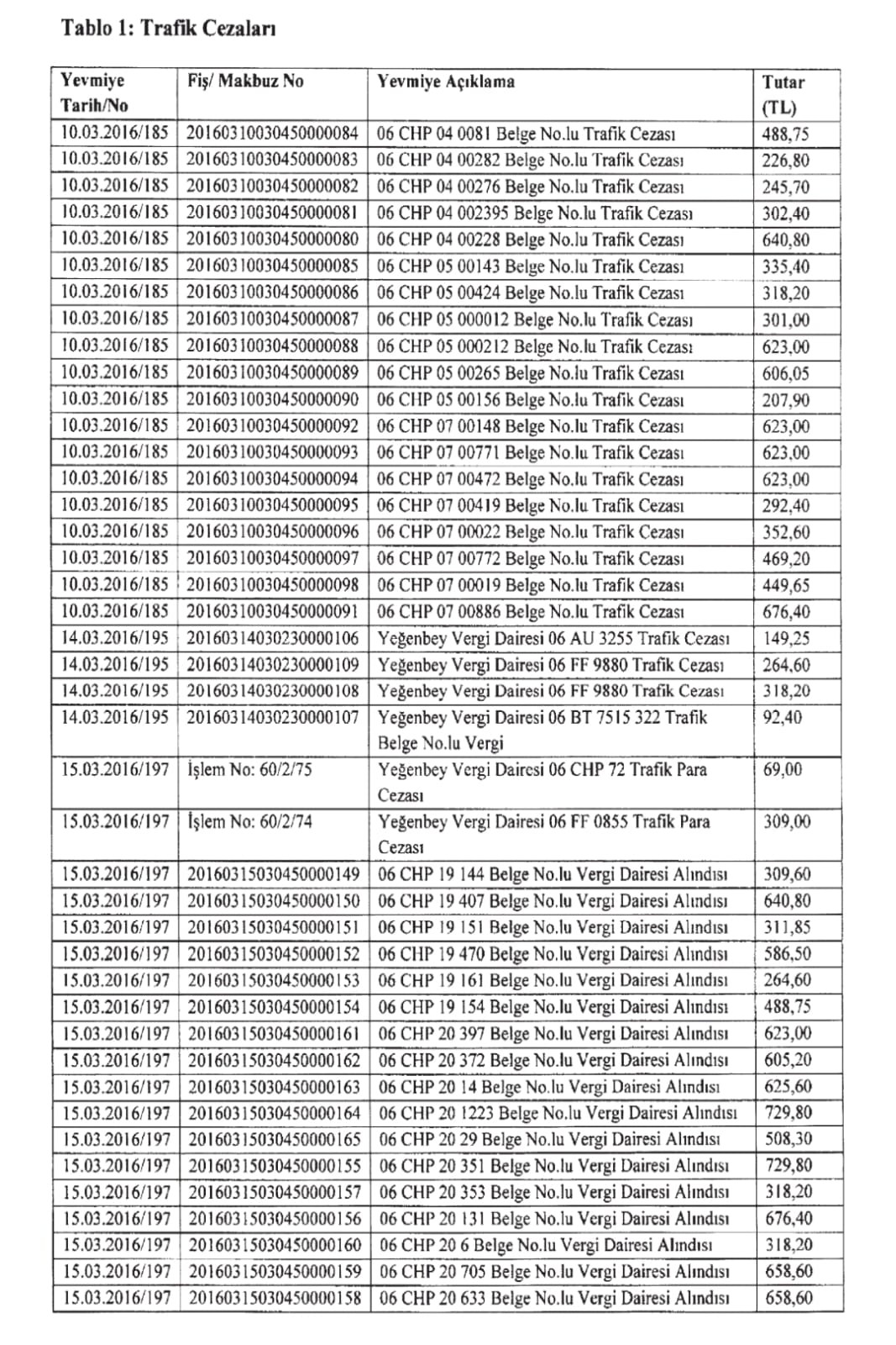 Siyasi faaliyet kapsamında kullanılan araçların olağan giderlerinin parti bütçesinden karşılanmasının ve gider olarak gösterilmesinin mümkün olduğu belirtilen kararda, siyasi parti görevlilerinin ya da çalışanlarının, hukuki yükümlülüklerini yerine getirmemelerinden ya da hukuk normlarını ihlal etmelerinden kaynaklanan cezalara ilişkin giderlerin, siyasi faaliyetler kapsamında kabul edilmesinin mümkün olmadığı vurgulandı.