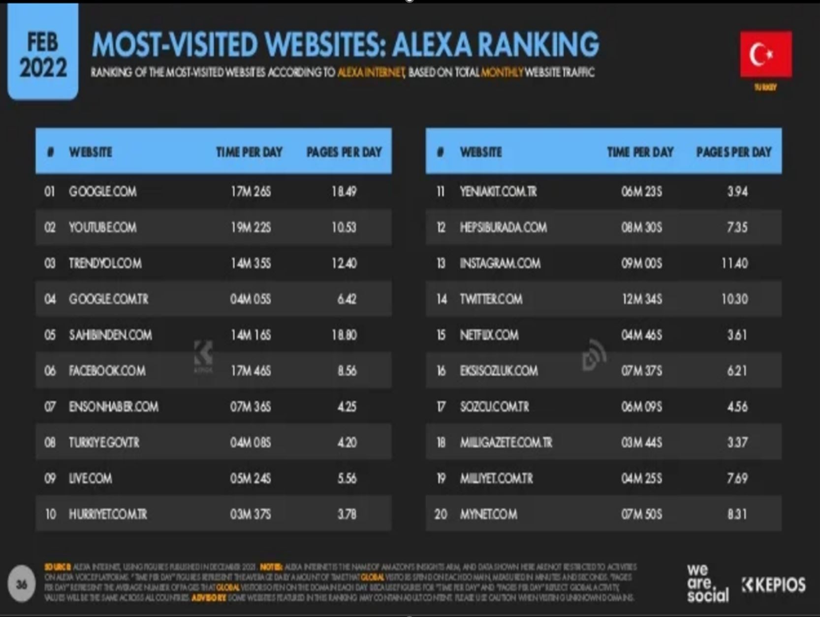 Dünya genelinde web ve sosyal medya raporlamaları hazırlayan We Are Social, 2022’de en çok tıklanan siteleri paylaştı.