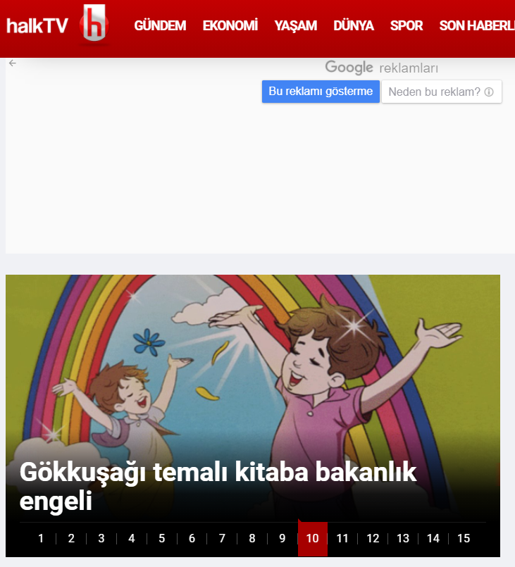 Aile, Çalışma ve Sosyal Hizmetler Bakanlığı, eşcinsel içeriğe sahip olduğunu tespit ettiği 'Büyülü gökkuşağı' adlı çocuk kitabına sınırlama getirdi.