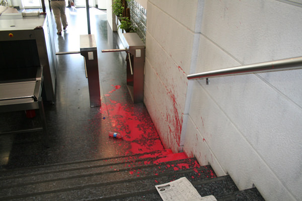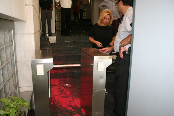 Sarı'nın hedef göstermesinin ardından bugün 15.30 sıralarında bir grup, Yeni Asır Gazetesi'nin Çankaya'daki merkez binasına saldırdı. İçeriye girerek sloganlar atan saldırganlar, "Burayı kan gölüne çeviririz" diye tehditler yağdırıp duvarlara kırmızı boya ve yumurta attı.