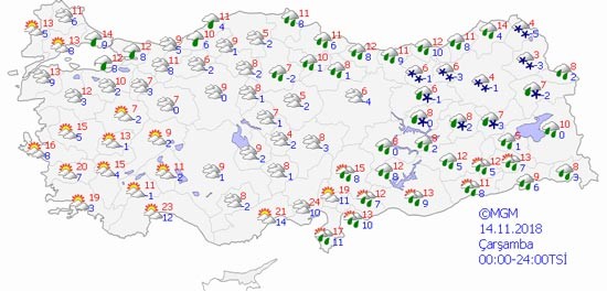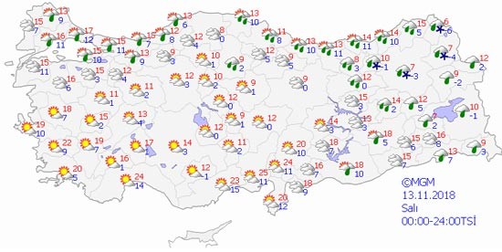 Kasım ayı kendini hissettirmeye başladı. Hava sıcaklıkları gittikçe düşüyor. Yeni haftada ise hafta boyunca soğuk hava kendisini gösterecek. Salı günü Doğu Anadolu Bölgesi'nde kar yağışı tahmin ediliyor.