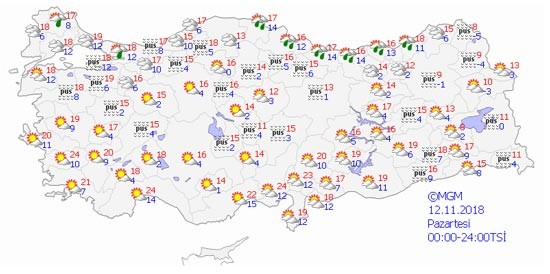 Yeni haftanın hava durumu raporu belli oldu. Bugün hissedilen soğuk hava hafta boyunca etkisini gösterecek. Pazartesi günü Karadeniz Bölgesi'nde etkili olacak sağanak yağış cuma gününe kadar tüm yurdu etkisi altına alacak.Salı günü Bayburt, Erzurum, Kars ve Ardahan'a kar yağacak. Ege ve Akdeniz bölgelerinde güneşli hava etkisini gösterecek fakat İstanbul'da sağanak yağış bekleniyor.