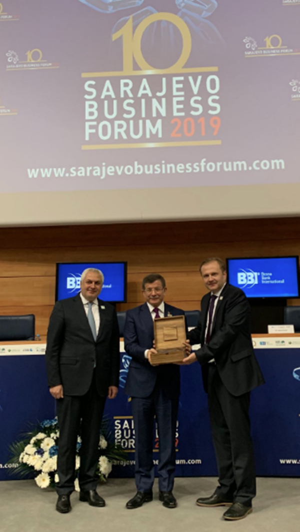 Eski Başbakan Ahmet Davutoğlu, Bosna Hersek'e dikkat çeken bir ziyaret gerçekleştirdi. 10. Saraybosna İş Forumu’na katılarak bir konuşma gerçekleştiren Davutoğlu'na, burada, Bosna-Hersek’in ticaretine yaptığı katkılar nedeniyle ödül de verildi.
