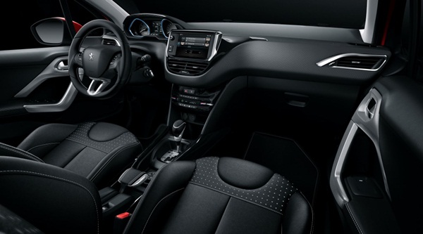 Kapıları açar açmaz dinamik karakterin iç mekanı da etkilediği görülüyor. Peugeot logolu eşik kaplamaları, alüminyum pedallar ve kırmızı dikişli zemin halıları hemen dikkat çekiyor. Gösterge tablosu mavi yerine artık kırmızı LED’lerle aydınlatılıyor ve dokunmatik ekran da kırmızı bir temaya sahip. Kırmızı dikişler ve detaylar iç mekanın tümünde; ön ve arka koltuklarda, kapı içi tutamaklarında, vites kolunda, el freni kolunda, küçük çaplı direksiyonda ve emniyet kemerlerinde kullanılarak 2008’in iç mekanındaki sportiflik arttırılıyor.