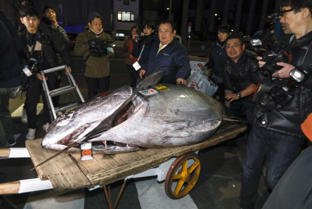 Tokyo'da yapılan yeni yıl balık mezatında 278 kiloluk mavi yüzgeçli bir orkinos 333 milyon yene (yaklaşık 16 milyon TL) alıcı buldu.