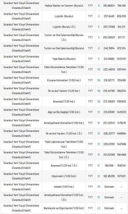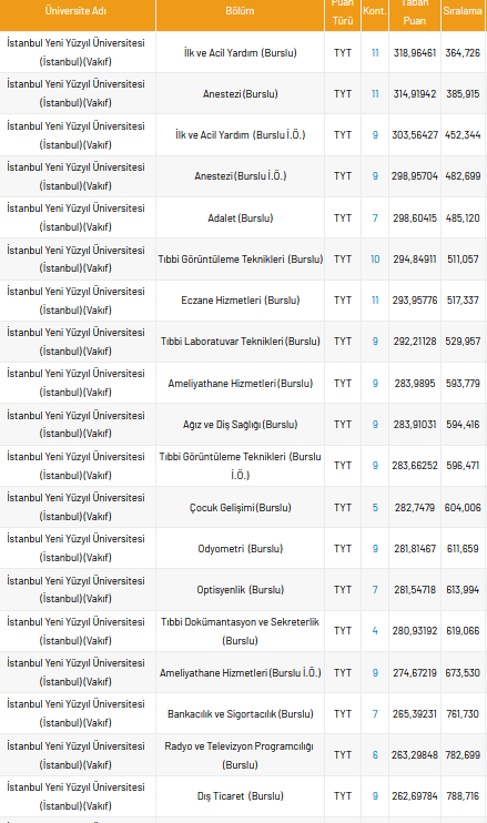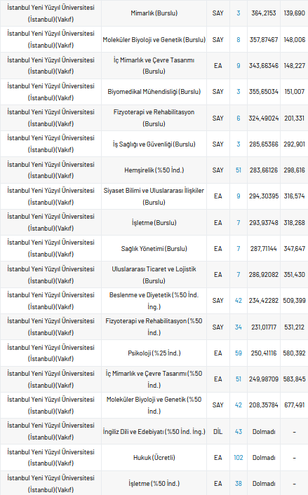 YKS sınavının yaklaşması sebebiyle öğrenciler, hedefledikleri üniversiteleri girebilmek için üniversiteleri taban puanları ve kontenjan sayılarını araştırıyor. Peki, Yeni Yüzyıl Üniversitesi taban puanı, en düşük yüzdelik, en yüksek yüzdelik ve kontenjan sayıları kaçtır?