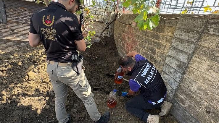Malatya'da merkezli soruşturma sonucunda İstanbul'daki bir adreste yapılan aramada, toprağa gömülü, piyasa değeri 10 milyon TL olan 7 kilo 450 gram sıvı metamfetamin ele geçirildi.