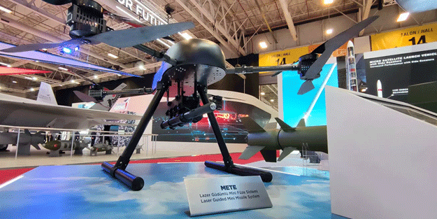 METE Lazer Güdümlü Mini Füze Sistemi, IDEF 2021’de ilk kez sergilendi. Bir mini İnsansız Hava Aracına (İHA) entegre edilmiş şekilde sergilenen METE, katılımcılardan yoğun ilgi gördü.