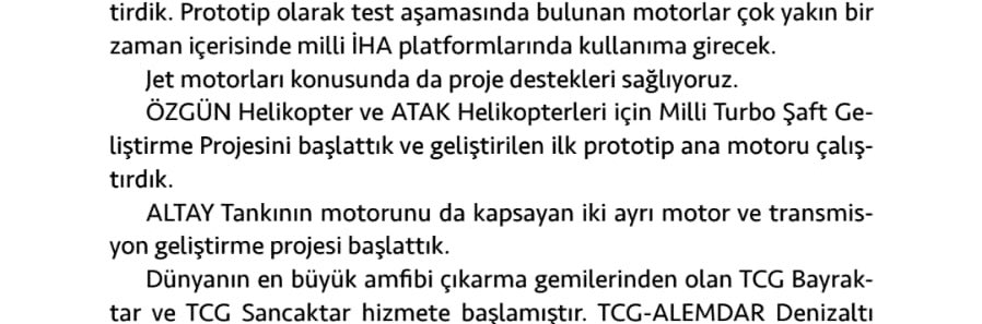 Bunun için ‘Milli Turboşaft Geliştirme Projesi’ başlatıldı. Son gelişmelere göre detay tasarımı süren motorun ana koru imal edildi. Ana motor da çalıştırıldı. Bu bilgiler, Ak Parti’nin 2018 seçim beyannamesinde yer aldı: