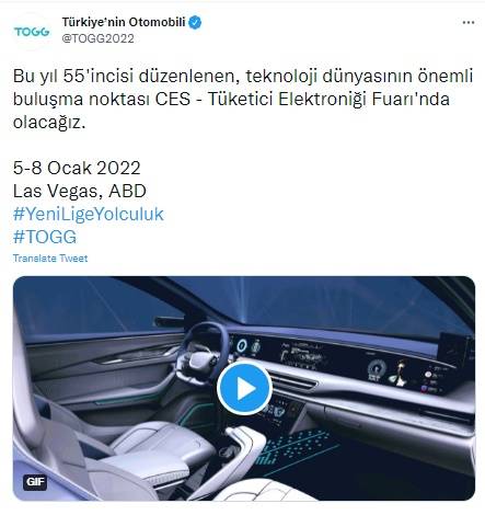 Konuya ilişkin Türkiye'nin Otomobili hesabında yapılan paylaşımda, "Bu yıl 55'incisi düzenlenen, teknoloji dünyasının önemli buluşma noktası CES - Tüketici Elektroniği Fuarı'nda olacağız. 5-8 Ocak 2022 Las Vegas, ABD" ifadeleri yer aldı.