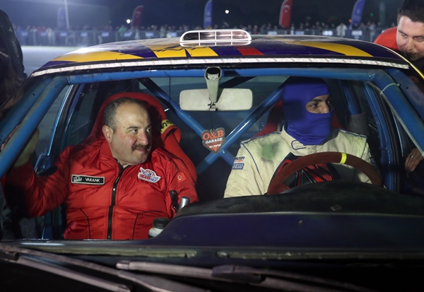 Varank, Bursalı drift pilotu Deniz Dursun’un "co-pilotluğunu" yaptı. Drift sırasında güvenlikli bölgede oluşan lastik dumanından göz gözü görmedi.