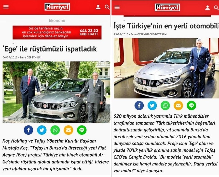 Hürriyet gazetesi, Koç Holding ve Tofaş'ın çalışmalarını ise müjde olarak duyurmuş, "İşte yerli otomobil" başlığını kullanmıştı.