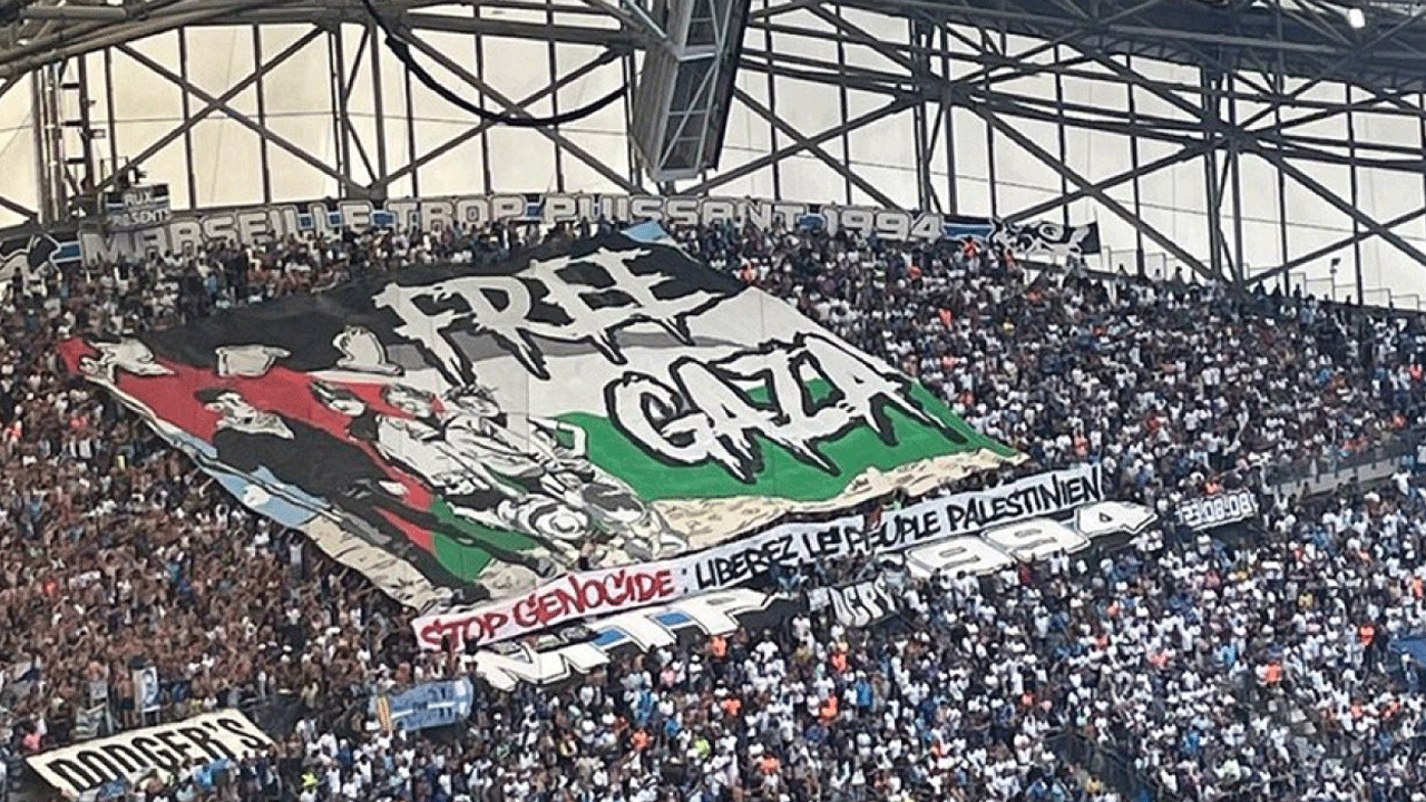 Fransa Ligue 1'in 2. haftasında Velodrome Stadı'nda Paris FC'yi konuk eden ve maçtan 5-2'lik galibiyetle ayrılan Olimpik Marsilya'da taraftarlar Özgür Gazze (Free Gaza) yazılı dev bir pankart açarak tepkilerini ortaya koydu. Pankartta İsrail'in saldırıları ve ablukası nedeniyle kıtlık yaşanan Gazze Şeridi'ndeki çocuklar da resmedildi