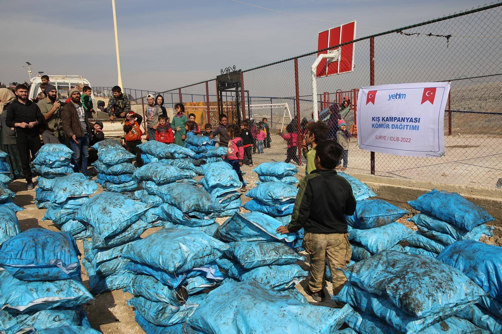 Yetim Vakfı Suriye’nin İdlib kırsalında çadır kentlerde yaşayan bin 200 aileye “Sıcacık Sevgiye Soğuk İşlemez” kampanyası kapsamında 300 ton kömür dağıtımı gerçekleştirdi.