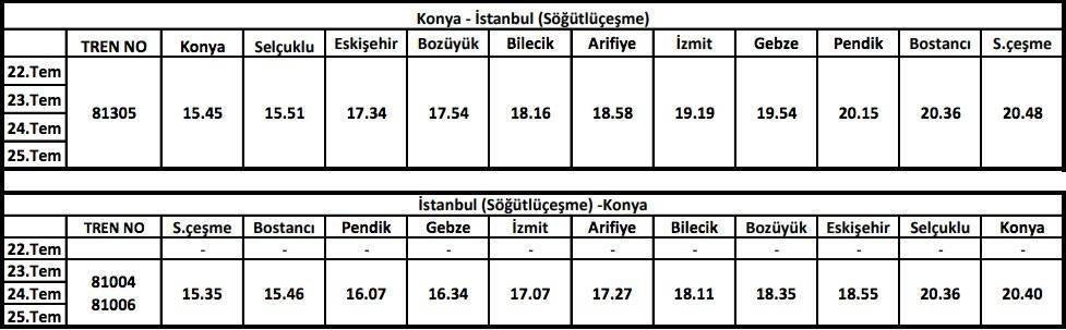 Kurban Bayramı nedeniyle artan yolcu taleplerinin karşılanabilmesi amacıyla Ankara-İstanbul (Söğütlüçeşme) ve Konya-İstanbul (Söğütlüçeşme) arasında ilave YHT seferleri konuldu.