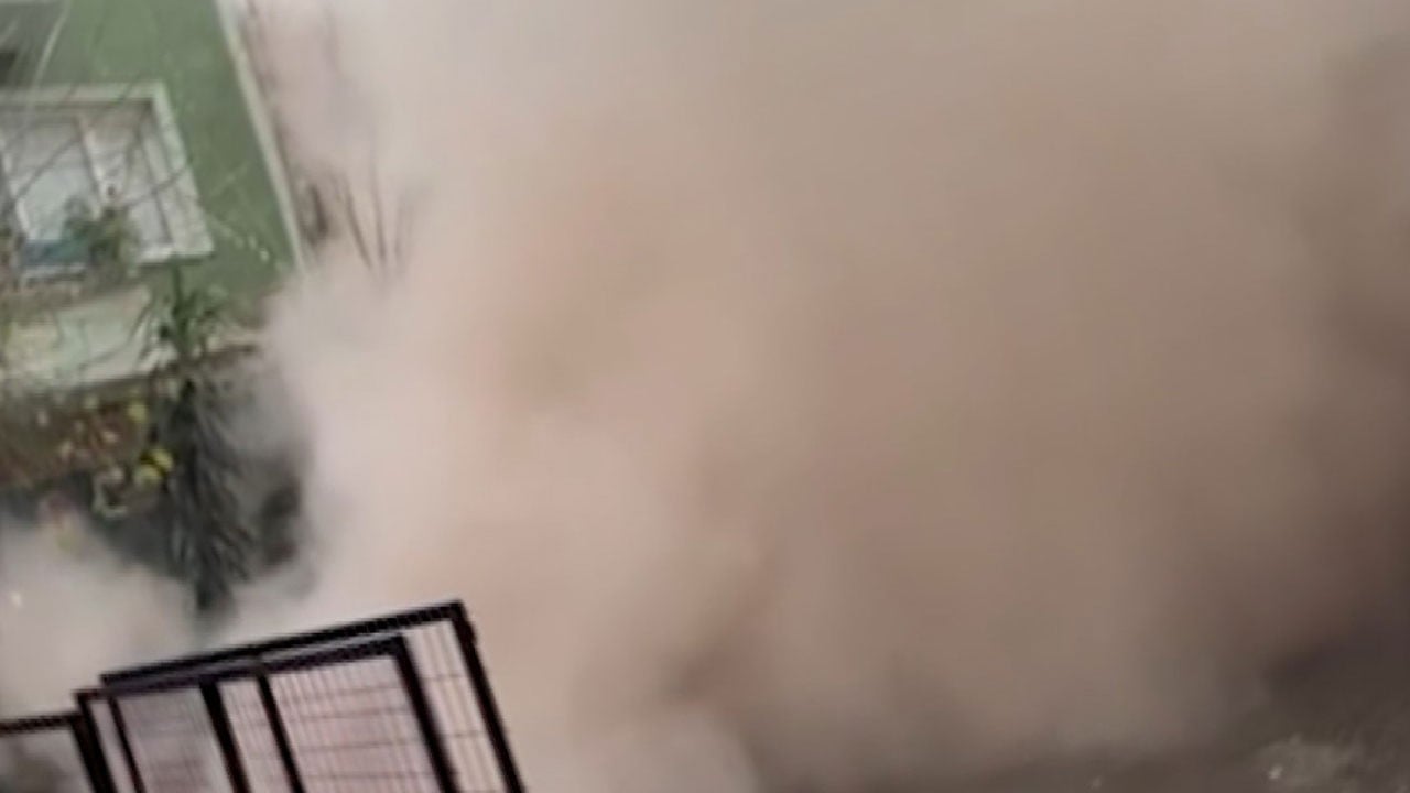 İş makinesi ile yıkım için harekete geçen operatör, binayı zeminden yıkmaya başladı. Binanın ilk 3 katı yıkılırken, son kat ise duvar ve kolonlar üzerinde ayakta kaldı. İş makinesinin darbesiyle son kat da yerle bir olurken, sokak toz bulutuyla kaplandı. Yıkım anları kameraya yansıdı. Çevredekiler ilk kez böyle bir yıkım gördüklerini ve şaşırdıklarını belirtti.