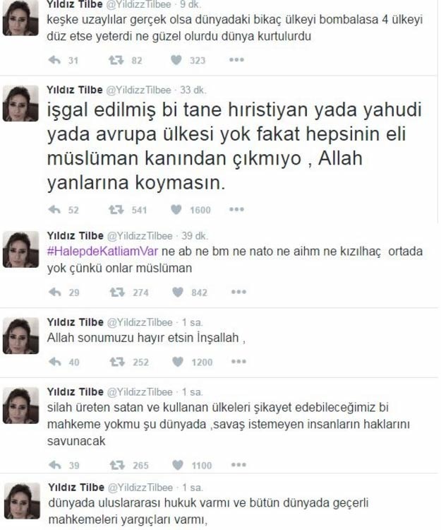 Türk pop müziğin sevilen sesi Yıldız Tilbe, Halep'te yaşanan katliama sessiz kalmadı.