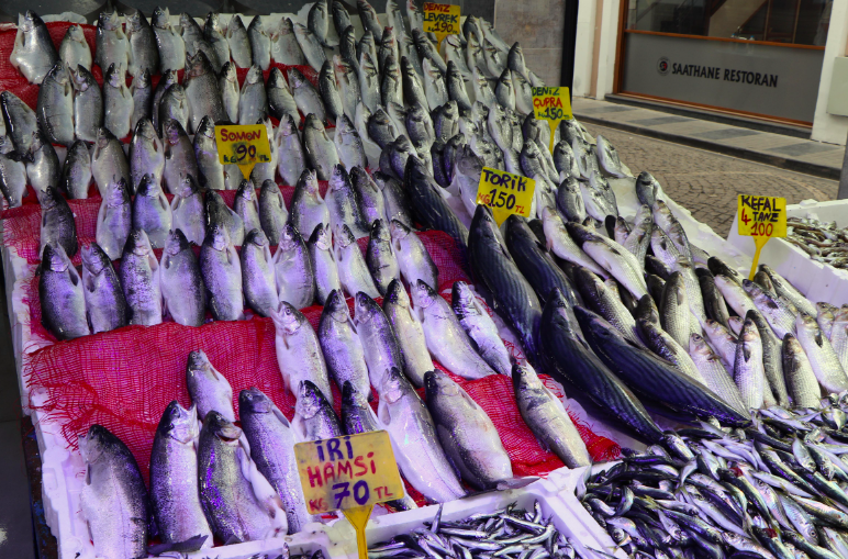 "Hamsi 70 TL, istavrit 50 TL, mezgit 40 TL, somon 100 TL, kaya balığı 60 TL, levrek 190 TL, çupra 150 TL."