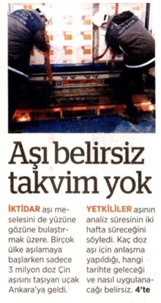 Anlaşmalar ve takvim ortadayken, BirGün gazetesi “Aşı belirsiz takvim yok” diyerek açıkça yalan haber servis etti. Daha önce de asılsız iddialarla fitne tohumları ekmeye çalışan BirGün, bu kez attığı yalanı bile eline yüzüne bulaştırdı. Hali hazırda nasıl ilerleyeceği açıklanan aşı çalışmalarının takvimi belirlenmişken, BirGün’ün bunu görmezden gelmesi, “Bu kadar da olmaz” dedirtti.