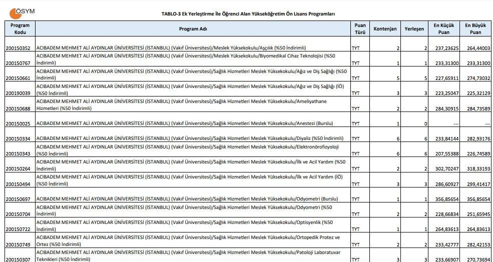 2020 YKS Ek Yerleştirme Sonuçlarına İlişkin Sayısal Bilgiler için tıklayın