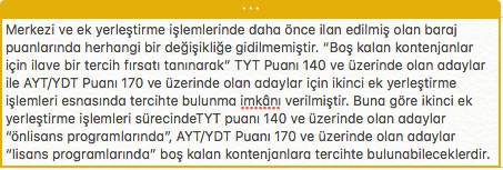 YKS 140 puan alanlar için ek tercih ne zaman başlayacak?