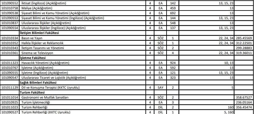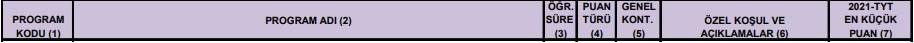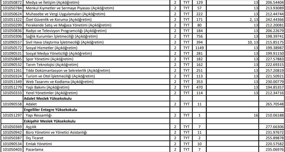 YKS ek yerleştirme AÖF boş kontenjan bölümleri 2021