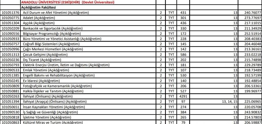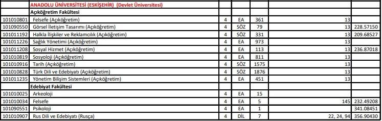 YKS ek yerleştirme işlemi 20 Eylül saat 10.00’da başlayıp 23 Eylül 23.59’da sona erecek. Ek tercih işlemi için adayların 25 TL yatırması gerekiyor. Eskişehir Anadolu Üniversitesi Açıköğretim Fakültesi lisans ve önlisans kontenjanları ise şöyle: