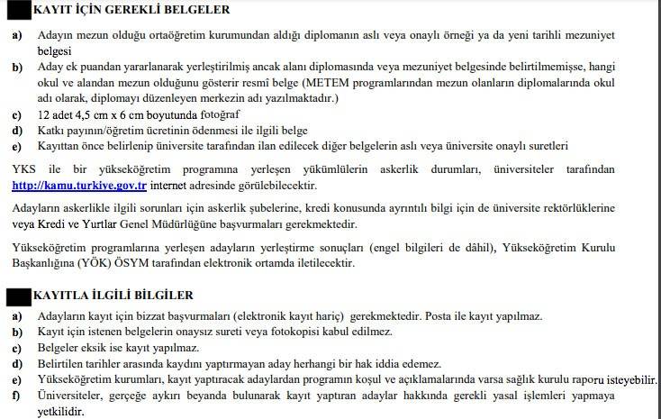 YKS ek yerleştirme üniversite kayıtları ne zaman yapılacak 2021