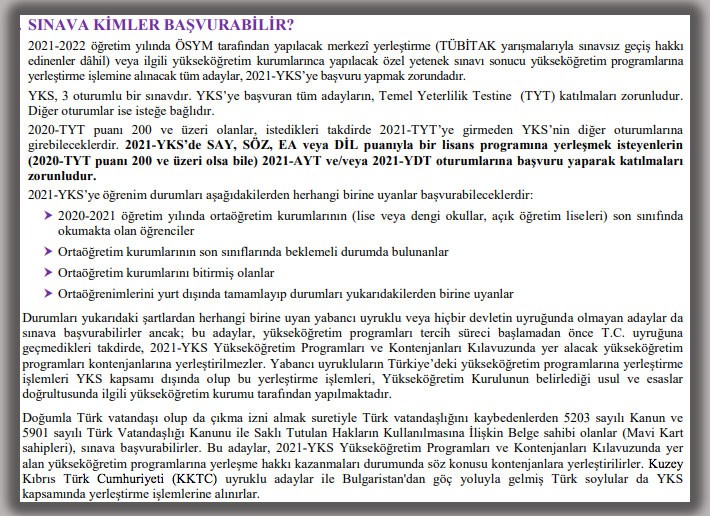 YKS başvuru kılavuzu için tıklayın