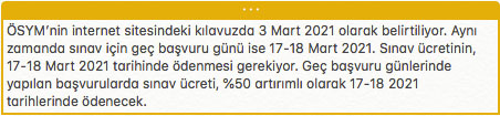 Ölçme Seçme ve Yerleştirme Merkezi (ÖSYM) Başkanı Prof. Dr. Halis Aygün, Twitter hesabından yaptığı açıklamada, 26-27 Haziran 2021 tarihlerinde gerçekleştirilecek 2021-YKS başvuru kılavuzunun yayımlandığını, başvuruların 4 Şubat-2 Mart 2021 tarihleri arasında yapılabileceğini belirtti.