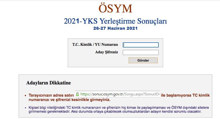 YKS TERCİH SONUÇLARI SORGULAMA İÇİN TIKLAYINIZ