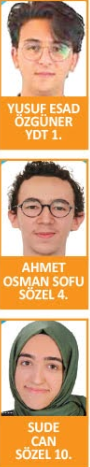 Temel Yeterlilik Testi (TYT) ile Yabancı Dil Testi (YDT) İngilizce Türkiye birincisi Zeynep Dila Kuyucu olurken, AYT Eşit Ağırlık”ta Selin Aşıkiraz birincilik elde etti.