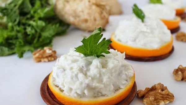 Salatayı servis tabağına altığınızda üzerini taze yeşillikler ve cevizle süsleyebilirsiniz.