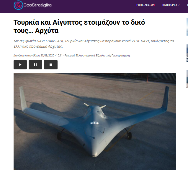 Haberde Türkiye'nin Yunanistan'ı İHA teknolojisinde kendi kendine yeterli hale getirmeyi ve Hava Kuvvetleri'ne çok amaçlı bir araç sağlamayı amaçlayan Yunan "Archytas"e benzer bir İHA programı yaptığı vurgulandı.